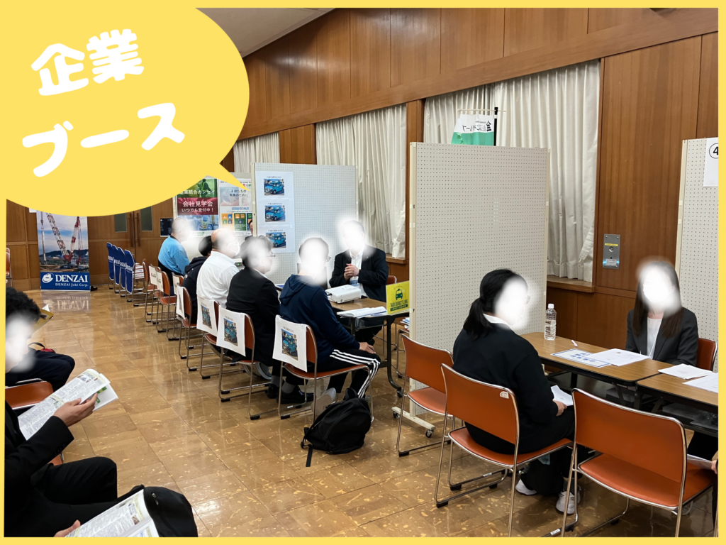 説明会当日、より詳しい話を聞きたい方のために、企業担当者とじっくり話せる個別面談ブースを別室にご用意します。